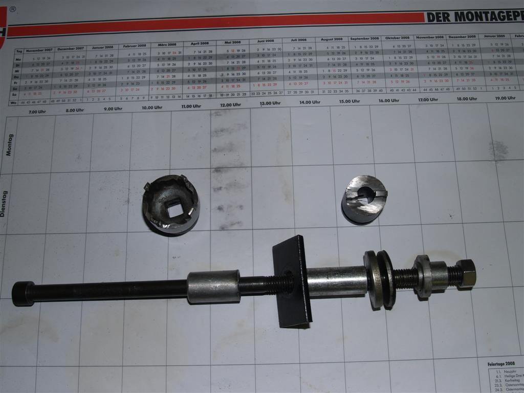 Um die Mutter ( Nr.9 ) und die Gewindebuchse ( Nr.8 ) zu lösen braucht man spezielle Zapfenschlüssel.